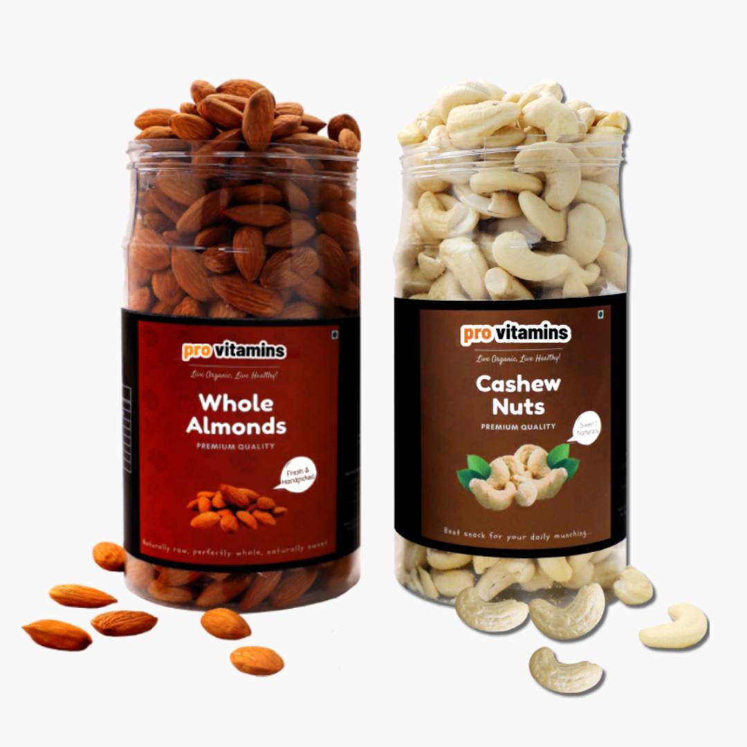 - USE: These almonds are abundant source of energy and are ideal for garnishing & cooking. Pro Vitamins Whole almonds are great for snack time cravings.